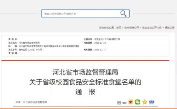 日前,河北省市场监管局公布2021年度省级校园食品安全标准食堂名单,全省共有455家食堂上榜,旨在全面提升学校食堂食品安全水平,充分发挥省级标准食堂的示范引领作用。