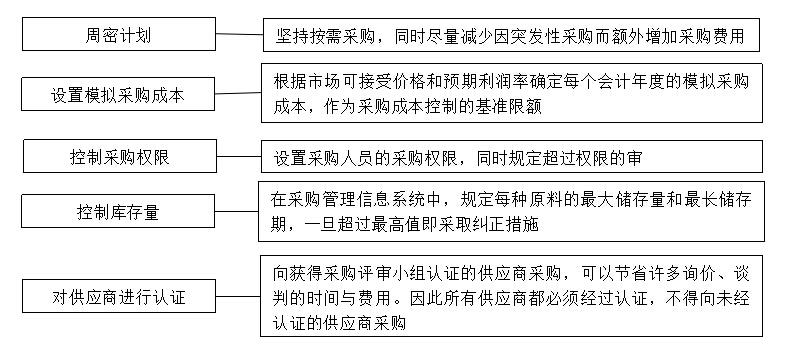 为了确保采购成本控制落到实处,应成立采购评审小组,由经理任组长、采购部门经理任副组长、各相关职能部门经理任组员定期召开会议,发动大家献计献策,从而是采购成本控制的理论和措施你贯穿到各个经营管理活动之中,