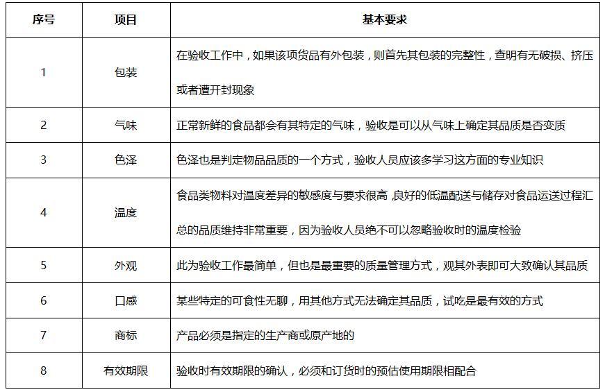 验收是对采购进库材料、质量和数量的检查把关工作,必须认真对待。对每件无心都要对照购货单核实复秤,发现少数或者质量不合要求的,应作好记录并及时告知采购员或送货员要求补足或者更换;对腐烂变质的食品原料坚决拒收。