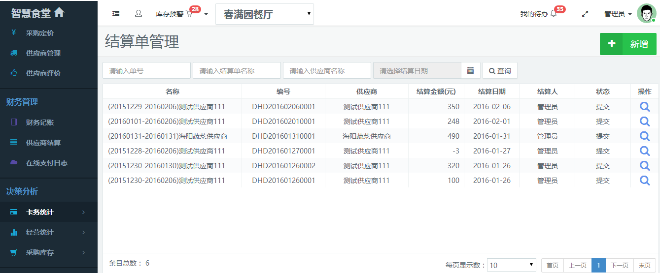食堂财务理是一项繁琐复杂的工作,每天要处理大量的单据数据。有了满客宝,食堂能及时结清每笔业务,还有专门的财务记账功能,真正实现了科学、高效的管理。