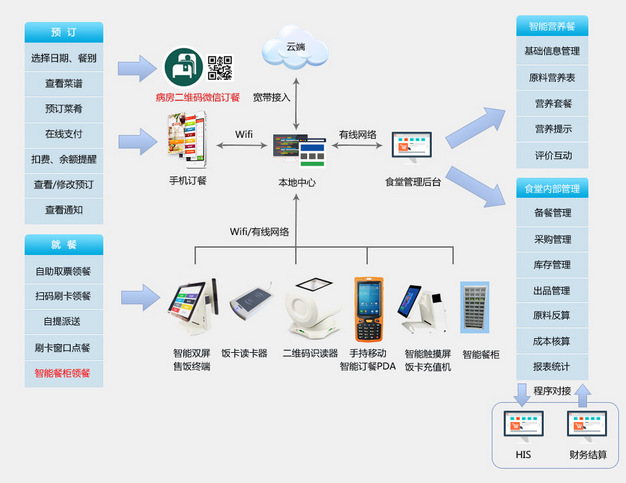 4、卫生安全问题有防范。食堂报餐系统支持在线支付和就诊卡支付,既方便病人又提高工作效率。医院实施就诊卡报餐后,解放了住院患者身后的大批家属。运用食堂报餐软件,可以做到菜品溯源,通过软件可以查询菜品的供货商、采购员、入库人、厨师等,形成监管效果,来约束个人行为,确保菜品安全。家属再也不用整天琢磨为住院患者做什么吃的,再特意挤出时间跑来医院送餐。