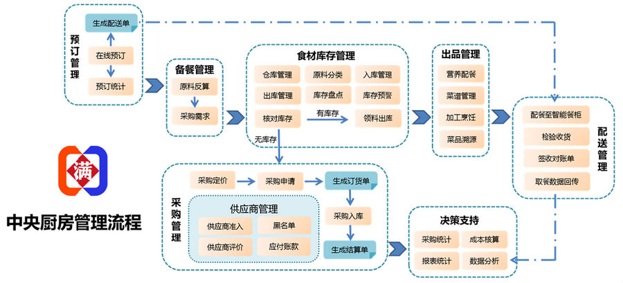 这些问题需要现代化的中央厨房管理系统来协助解决,如果能及时解决这些问题,那么中央厨房就将在食堂这一餐饮业态领域畅行无阻,并且助推食堂的飞速发展。