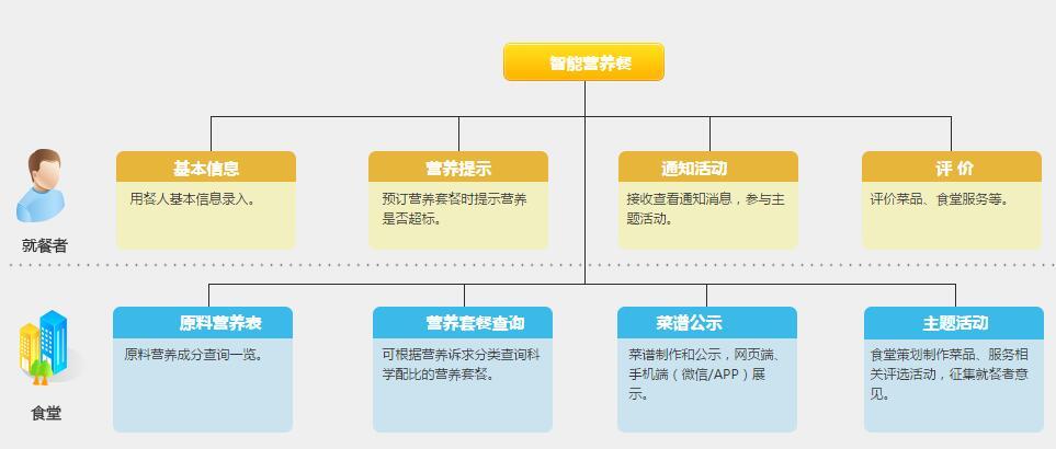 学校食堂管理系统的智能营养餐模块为学生设计营养良好的食堂营养餐,改善学生营养缺乏现状,调整饮食结构,增加营养含量,提高学生饮食质量,发挥学校强体与育人的双重功能,促进青少年健康成长。