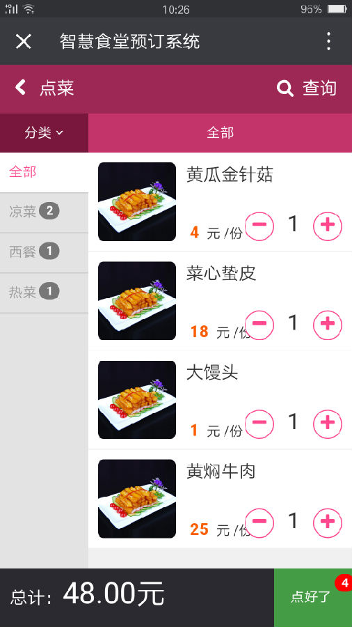 高校食堂管理系统除了食堂微信平台订餐派送功能,还有主要由就餐管理、食堂内部管理、后勤总部管控、智能营养餐等几部分应用组成。能帮助高校食堂从订餐环节开始精细化管理,实现精准备餐、合理安排原材料采购、监控库存、指导烹饪出品、菜品溯源、成本核算等所有环节的全方位管控和可追溯,一旦出现问题,可以通过系统迅速追溯源头。