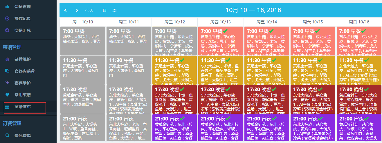 目前一些传统食堂的菜谱每周发布一次,菜谱采用纸质形式贴在食堂以供就餐者了解,而一些传统食堂甚至不发布菜谱,就餐人员到食堂后有可能发现食堂菜品是自己不爱吃的并且没有渠道去告知食堂,给就餐人员带来诸多不便。对此,满客宝智慧食堂管理系统应就餐人员需求,食堂管理需求,研发出了更智能、更便捷的食堂菜谱功能。