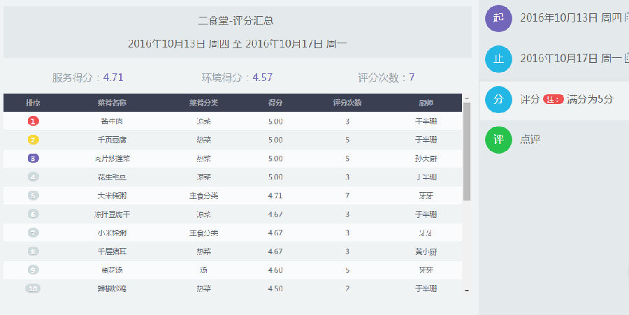 后台可自动汇总点评数据,指导食堂进行改进,形成良性循环,让职工更愿意在食堂就餐。