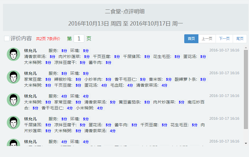 就餐者用餐后可进行点评。系统支持手机APP或微信等终端进行在线点评,点评内容包括菜品口味,用餐环境,食堂服务等多个维度。