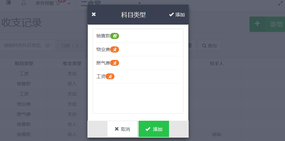 食堂管理软件支持自定义财务科目记账,用于财务人员统计每一笔过手的账目,并可自由添加或删除财务收支科目类型,软件的财务记账作为财务人员电子记账本,更加便于系统进行食堂成本核算。财务人员只要通过系统导出数据与原始凭证查验即可,省去了大量人力计算环节,减少了计算误差,最大程度上达到了精准核算。