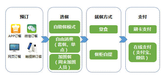 为满足就餐者和食堂管理需求并紧随时代发展,智慧食堂管理系统实现了食堂在线预订餐,让给类型食堂的就餐者更方便的随时选择自己喜爱的菜品。在线订餐方式有手机app、网页、微信等,而微信几乎是人人都有的手机软件,应用起来非常方便。