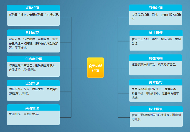 单位食堂运用现代化的技术手段的单位食堂管理系统在食堂运营各方面来有效控制成本,并将有效提高食堂管理水平。
