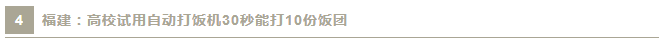 近日,福建师范大学食堂出现的一台自动打饭机引起了不少网友的关注。据悉,使用者只需将铁碗放进卡槽,刷饭卡后,自动打饭机就会“吐”出一团压成长方形的饭团。一台自动打饭机可以满足1000人的需求,30秒就能打10份。