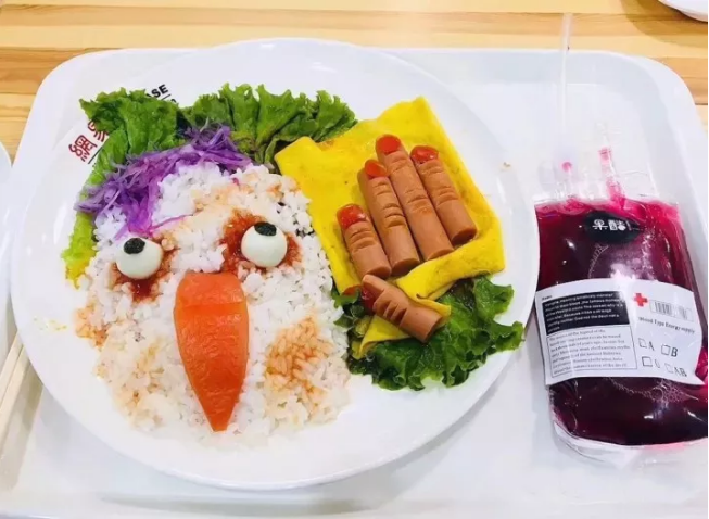 每到节日食堂师傅就开始给菜菜们加戏,比如万圣节做的精致主题餐。