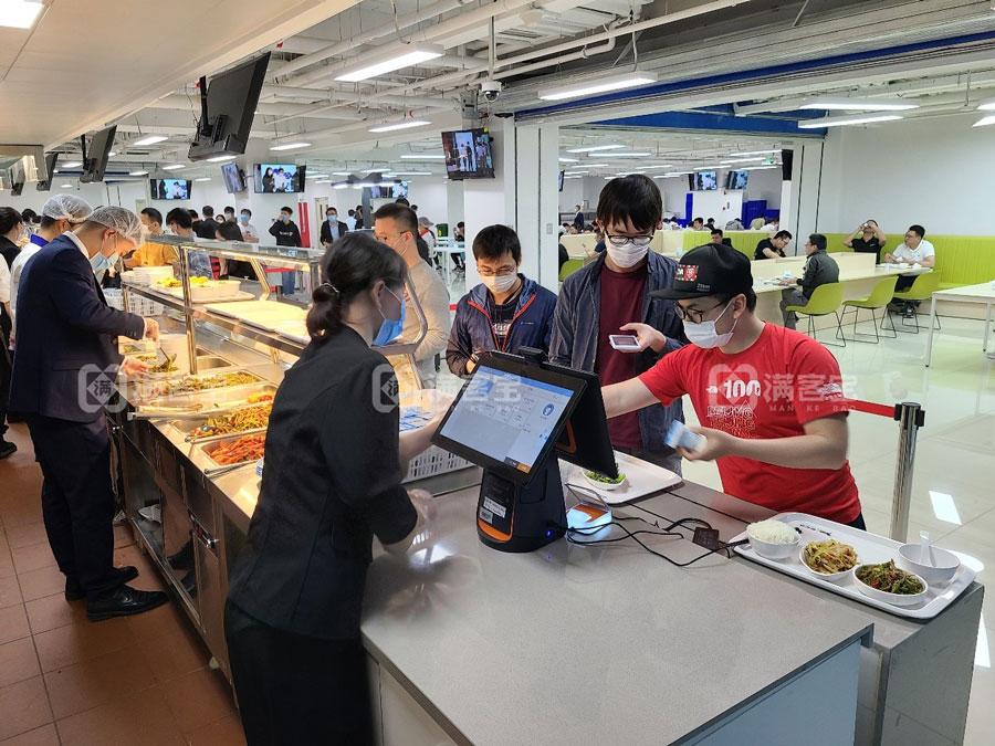 其次,针对食堂档口售饭系统的支付设计,满客宝也投入了新的技术应用,并获得了重大的实践成果。通过将金融级AI人脸识别技术搭载智能化硬件设备,满客宝可协助单位食堂实现智能化极速支付。人脸识别技术采用三维建模、面部标点的形式,对人物瞳孔、性别、胡须等十多种属性进行记忆和识别,即便是同卵双胞胎的细微差别也可识别,准确度达99.99%,具有超高的精确率和稳定性。在食堂售饭场景中,员工通过售餐终端进行点餐、取餐或支付,采用人脸识别可大大缓解档口排队压力,平均用时小于0.3秒的超高速识别,能极大提升峰值就餐效率。