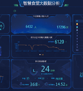学校管理者或教育局可通过数据分析平台对食堂经营情况、人员就餐情况、人员就餐费用、食堂就餐效率、菜品销售排名、食堂菜谱数量等进行云端监管,并对食堂运营数据进行分析,为决策者提供可视化数据。